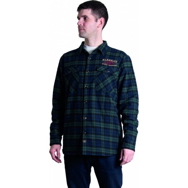 Рубашка с мех. подкл. синяя клетка Рубашка рыбака Alaskan с длинным рукавом предназначена для ношения в прохладную погоду, имеет классический отложной воротник, два накладных нагрудных кармана и застежку на пуговицах. Ткань верха - фланель. Подкладка - искусственный мех. Эта модель может заменить собой толстовку.