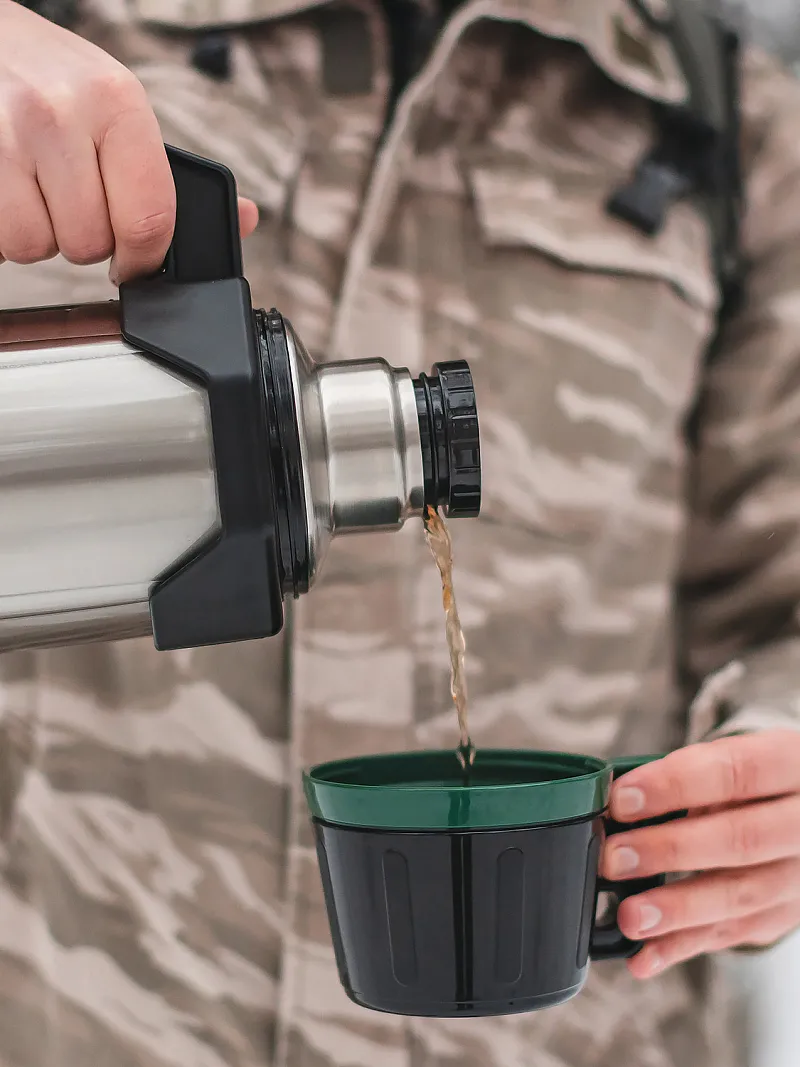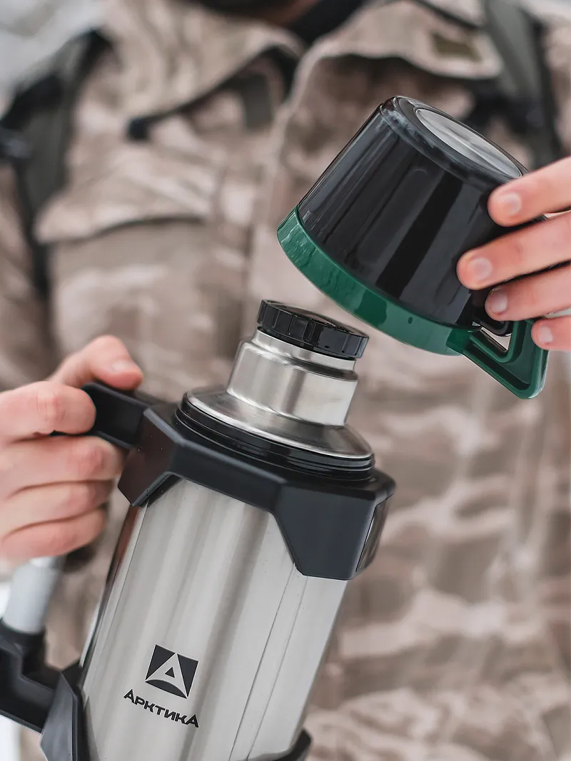 Вакуумные термосы из нержавеющей стали. Лидеры: Zojirushi (до 36 часов), Tiger (24–32 часа), ARCTICA (20–28 часов). Для рыбалки и охоты берите объём 1–2 литра.